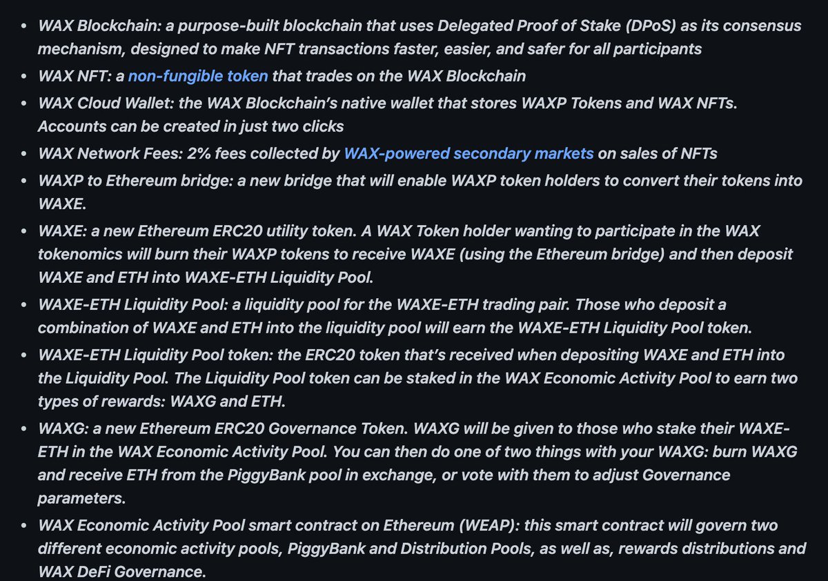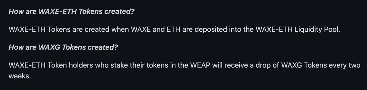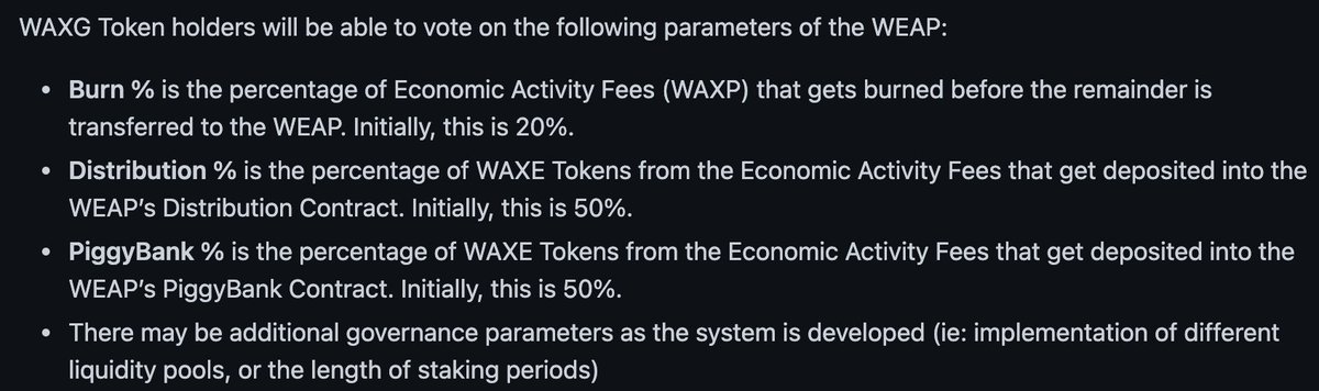 2) WAXG(new gov token) will drop to WAXE-ETH LP providers. WAXG Token holders will be able to vote on economic metrics like burning ratio and distribution ratio.