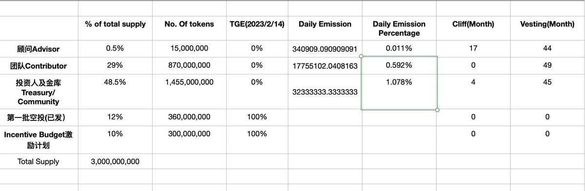 2)也就是说,从第4个月开始,每天有至少1.67%的token释放,按照当前$2B的总市值计算,每天释放需要$33.4M的资金承接;按照日交易量67M计算,排名在CMC排名前60。如果市场情况不好的话,token抛压会是比较大的。
