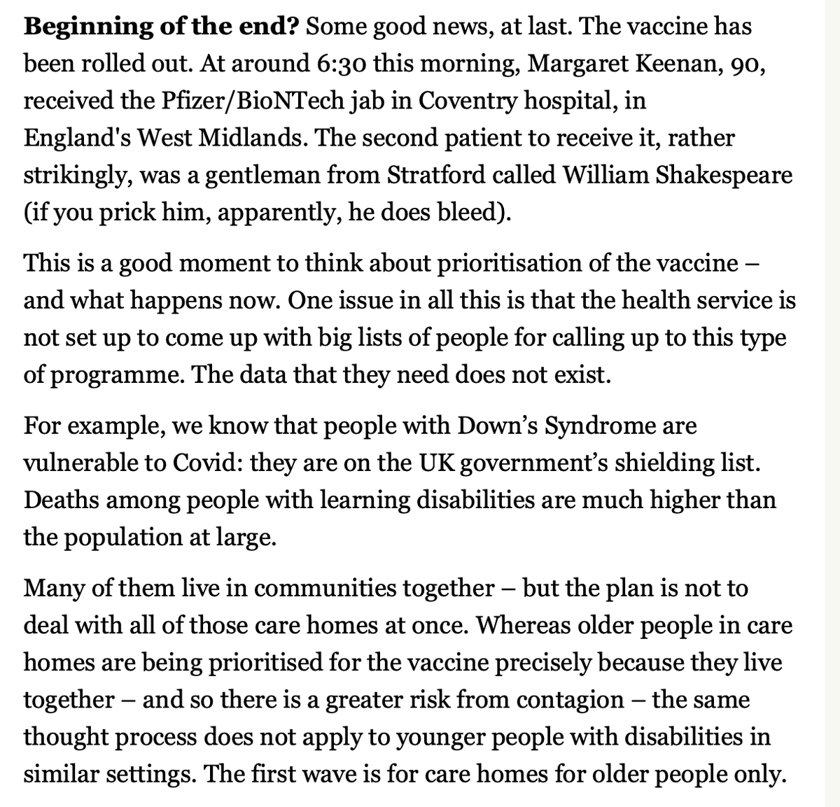 https://twitter.com/jowhiley/status/1364241200094527490I've worried about people with learning disabilities as a group before. But all people in institutional settings need to be bumped up all the lists: the self-selection of being in a home plus communal living make them extra- vulnerable.