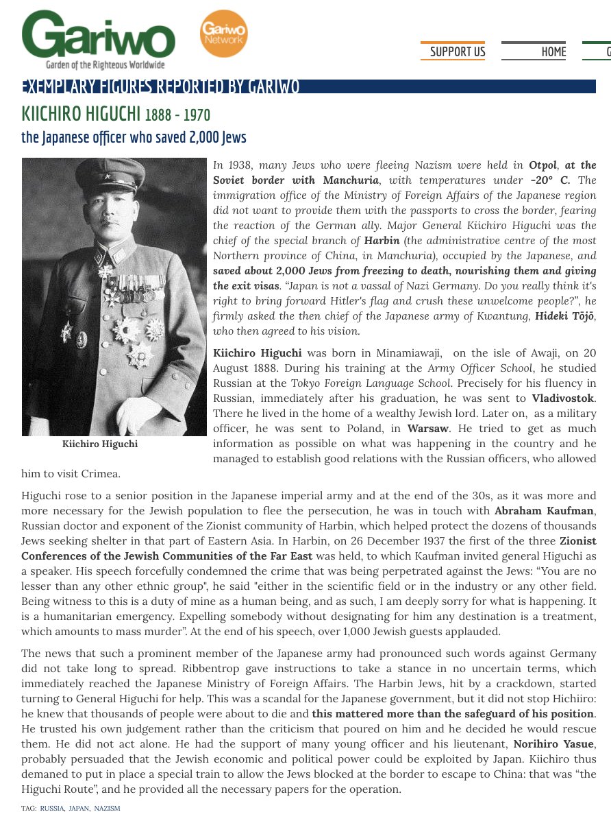@usembassytokyo Marvin Tokayer( American Rabbi,Author & former U.S Air Force chaplain in Japan)has researched the history & said that "Class A war criminal" were hero for Jews & Japan was only country saved Jews. He praises General Hideki Tojo and General Kiichiro Higuchi, who saved 20,000 Jews