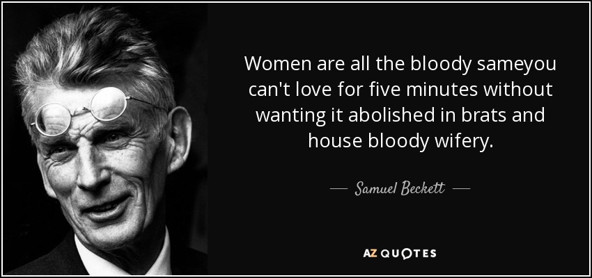 2- Beckett'in "Worstward Ho" (Haydi En Kötüye) adlı öyküsündeki "Yine dene.Yine yenil. Daha iyi yenil" sözünü ilerlemeci bir pozitiflikle okumak sorunludur. Beckett bu sözün biraz ilerisinde "Yine daha kötü yenil." demektedir.