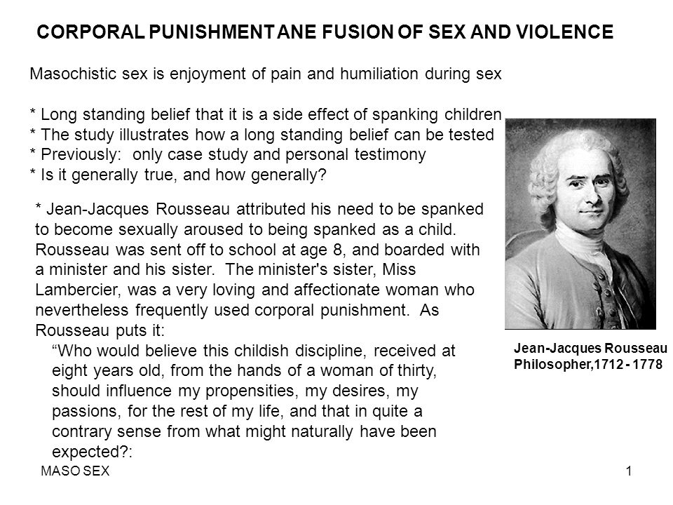 2- Rousseau, kıçına indirilen darbelerden zevk aldığını hisseder. Başka bir gün Rousseau yine aynı “cezaya” maruz kalır ama bu kez matmazel Lambercier durumu fark edip dövme işlemini yarıda keser. Rousseau bundan böyle..