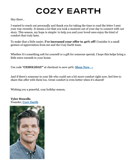 Today, we review Cosy House Collection’s Cyber Monday email has all the right ingredients for a high-performing holiday send: big savings, clear product showcases, and bold visuals