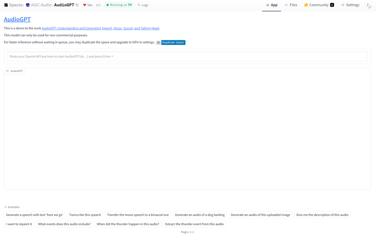 @Gradio 🎤🤖 #AudioGPT's advanced capabilities are on full display in the @Gradio demo, which features a chat component that incorporates automatic speech recognition and text-to-speech generation. And the best part? It can even sing! 🎶 All thanks to Foundation audio models.