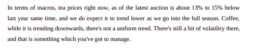Hemant Bangur, chairman of the Indian Tea Association, warned that "only a handful of estates will achieve positive EBITDA, thus eroding the industry's financial foundations further." Tea prices have crashed from ₹304/kg to ₹221/kg. The ITA is calling for a minimum support price.