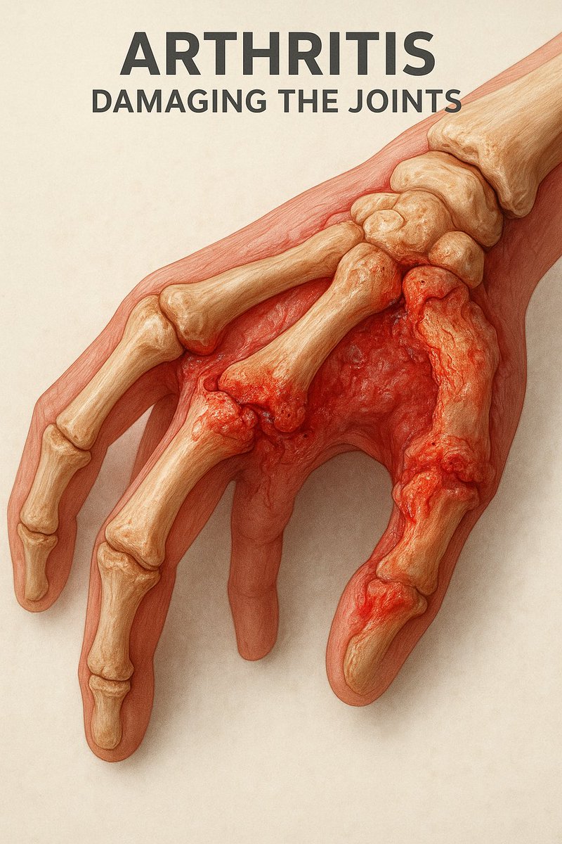The lining of the joints (synovium) gets inflamed which leads to swelling, pain and progressive joint damage if untreated.